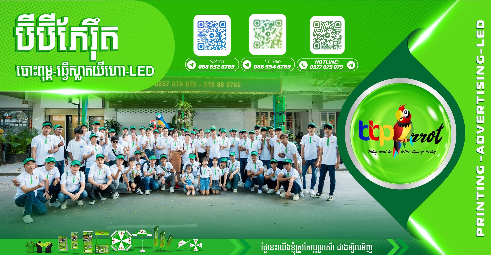 Từ một xưởng nhỏ chỉ có vài công nhân, đến nay BBParrot đã trở thành một trong những đơn vị uy tín hàng đầu tại Campuchia trong lĩnh vực in ấn – bảng hiệu LED – biển quảng cáo – thi công showroom – POSM – quà tặng doanh nghiệp.